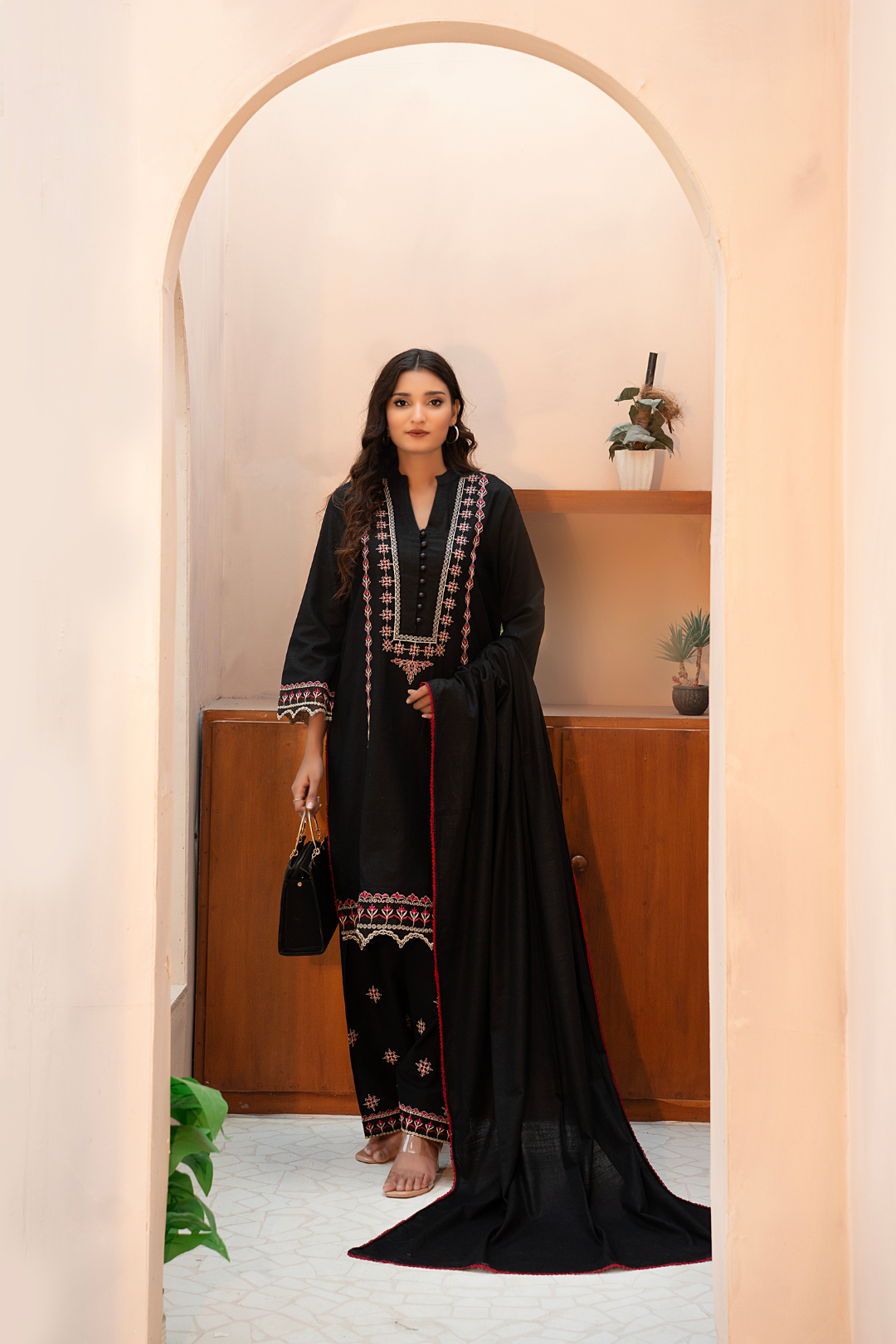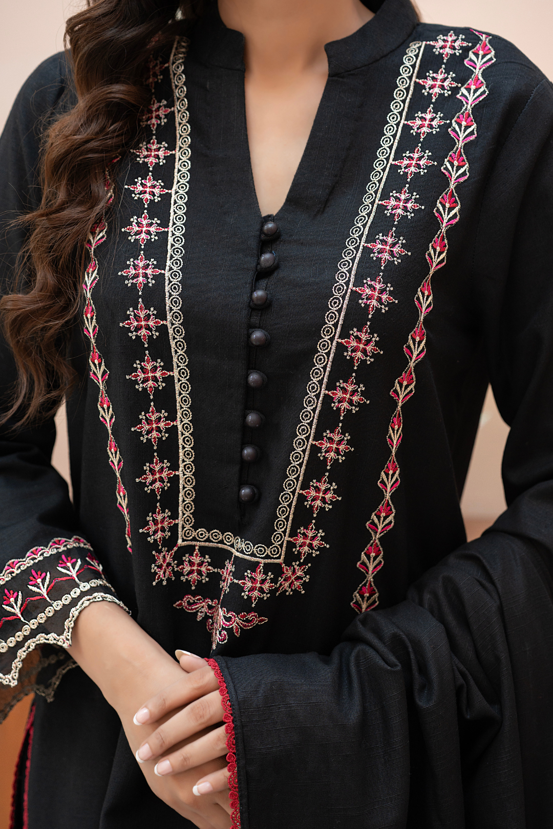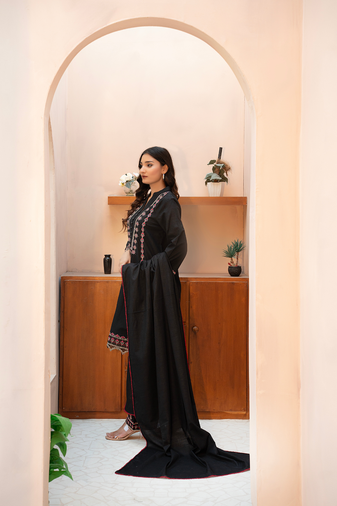 Black Petal – Embroidered Khaddar 3-Piece Set