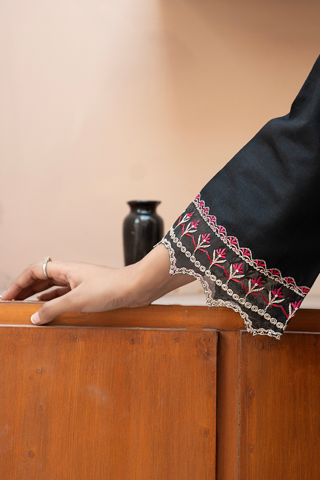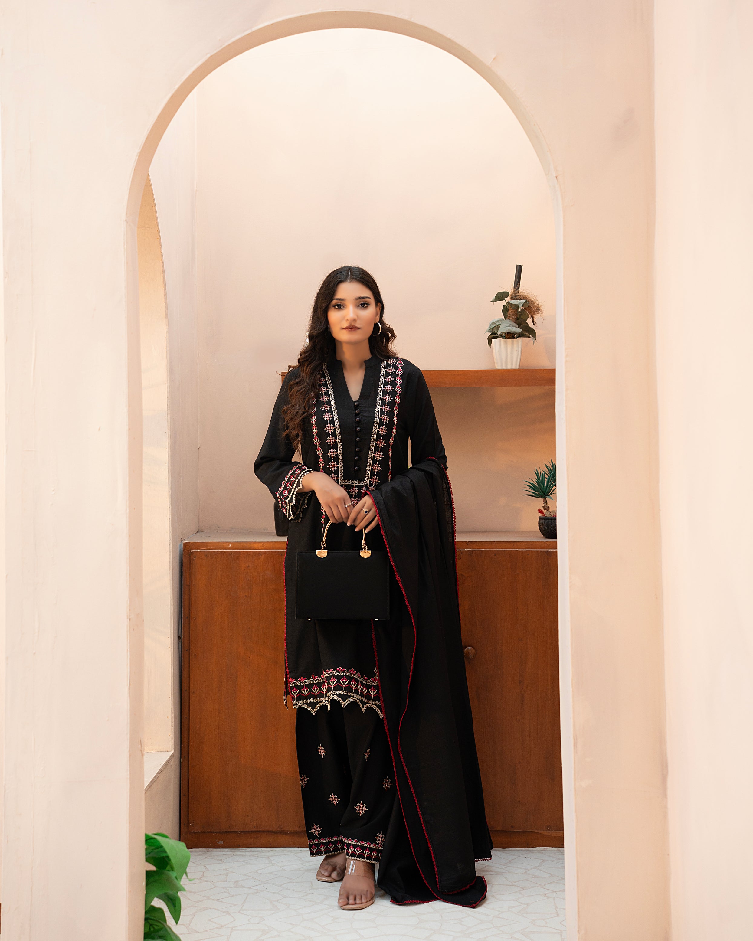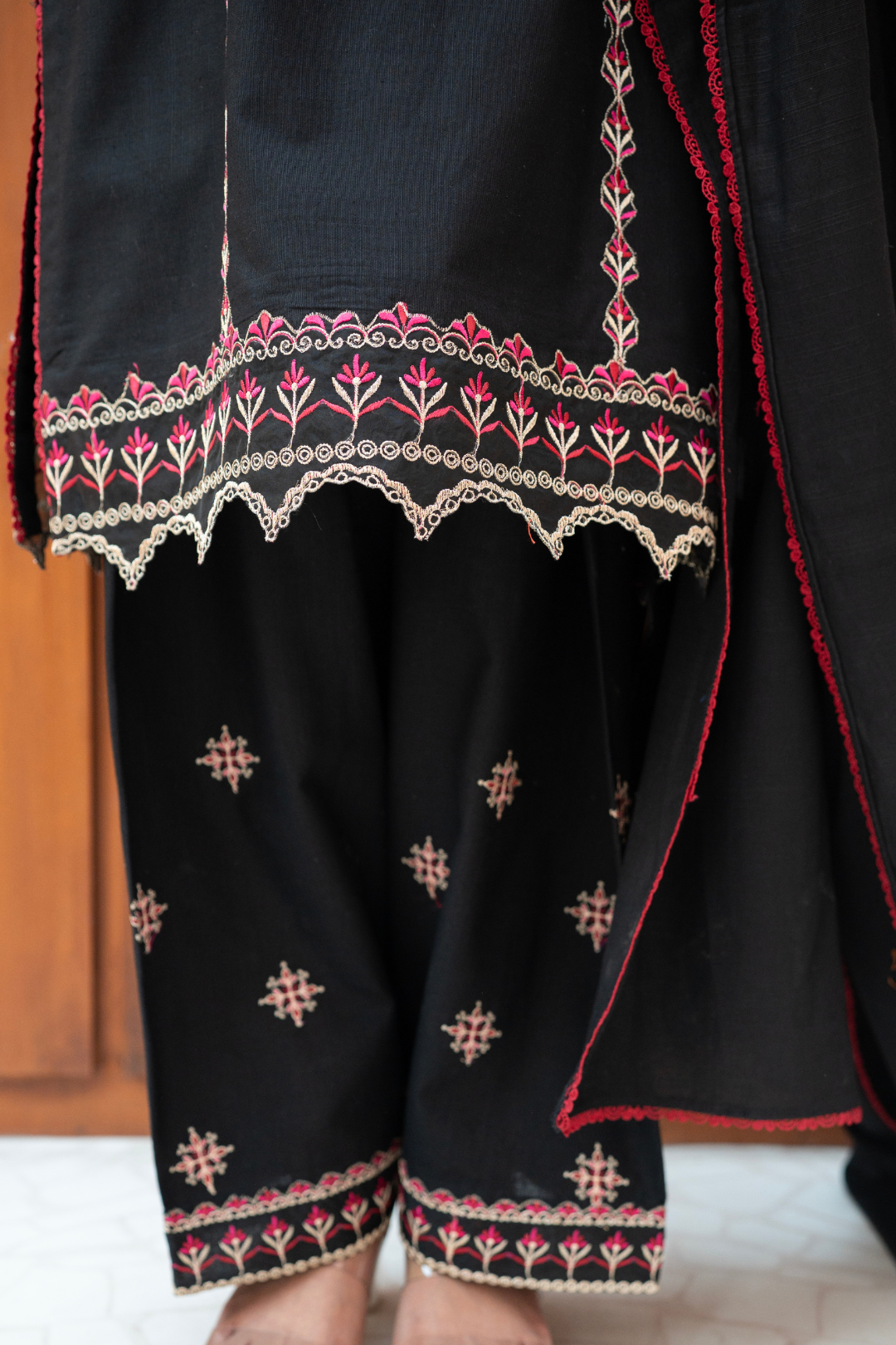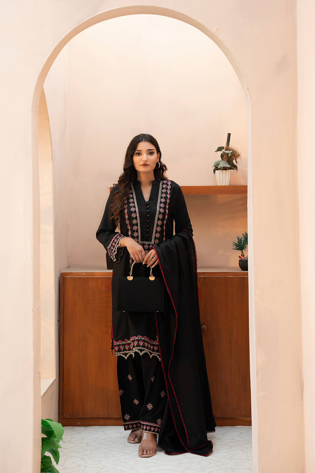 Black Petal – Embroidered Khaddar 3-Piece Set