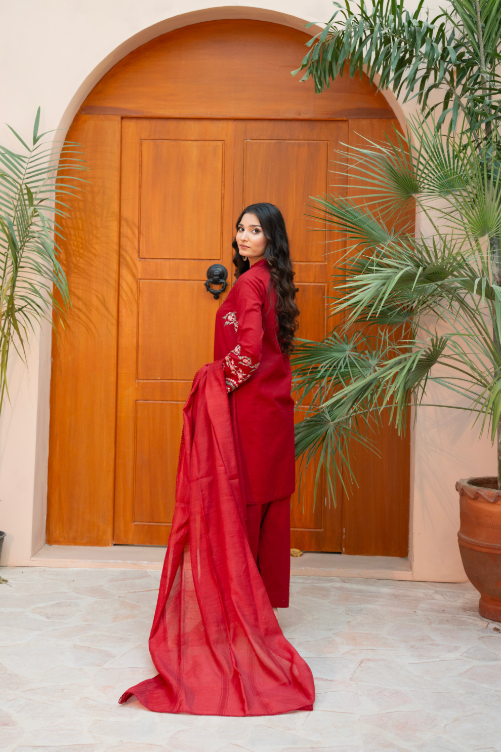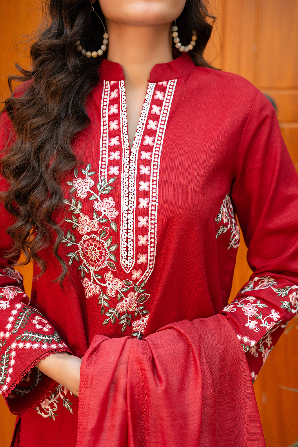 Garnet Grace – Embroidered Khaddar 3-Piece Set