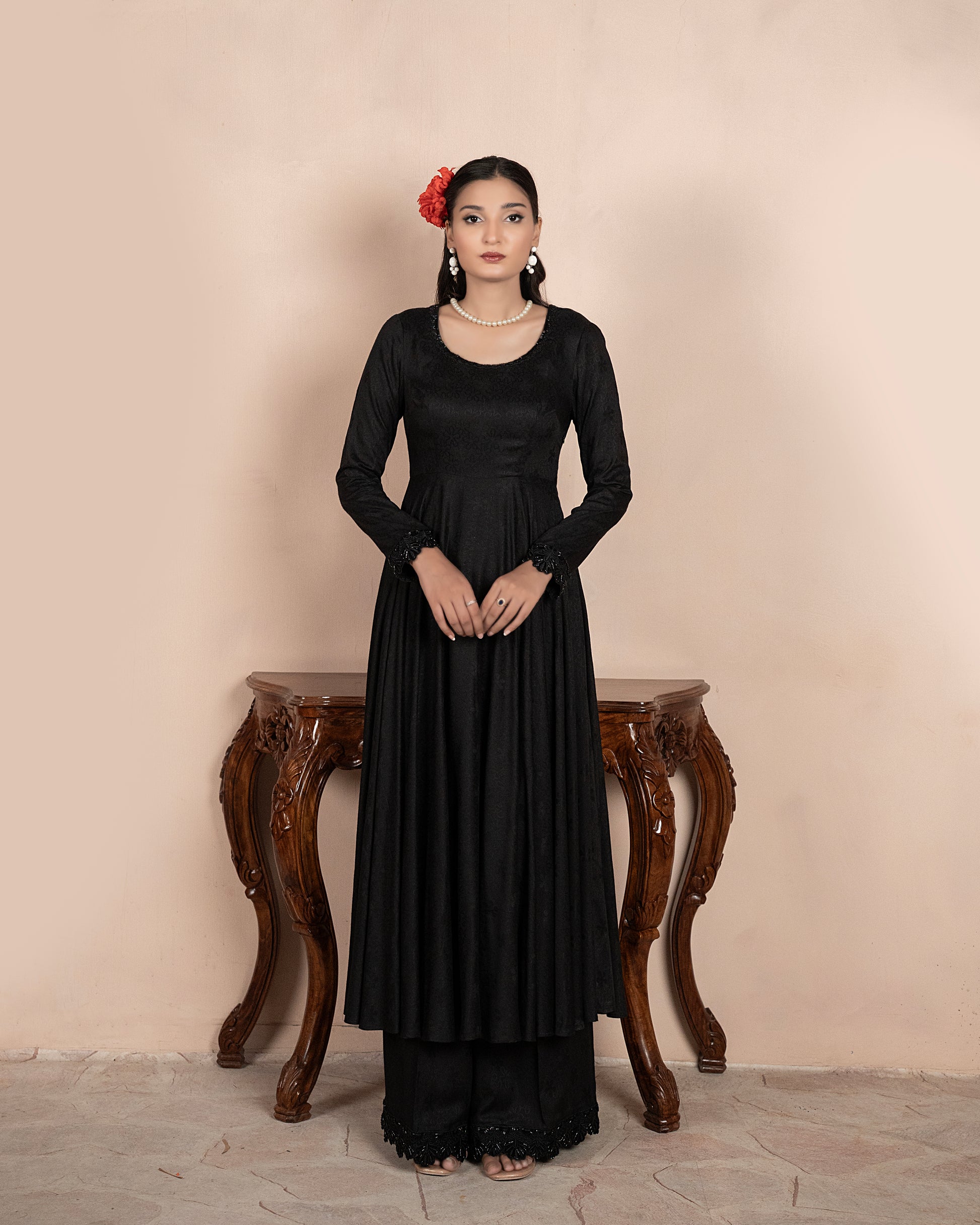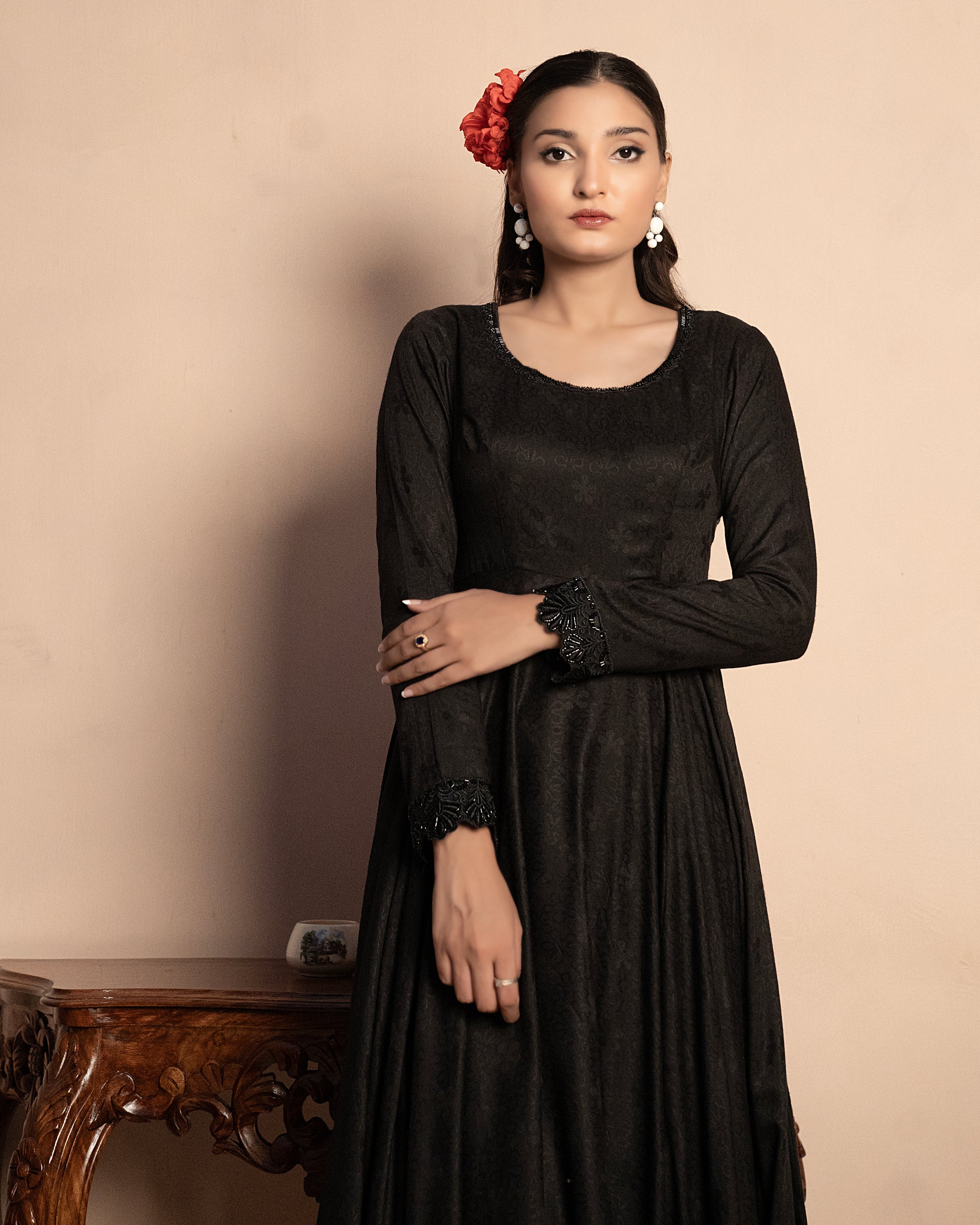 Step into the world of luxury and sophistication with “Noir Éclat” — a masterpiece that embodies the timeless allure of midnight. Crafted with meticulous artistry, this black evening gown features hand-embroidered crystals delicately placed along the neckline and waist, adding a luminous touch of refined opulence.